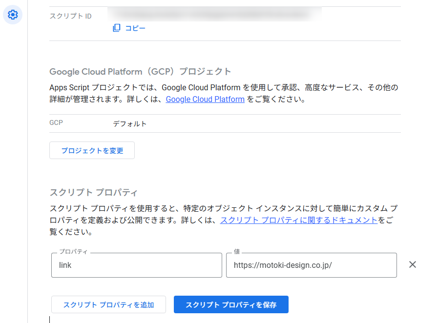 Google Apps Script(GAS)では、APIトークンや外部リンクなどソースコード内に直接書きたくない情報を「スクリプトのプロパティ」に設定することができます。
