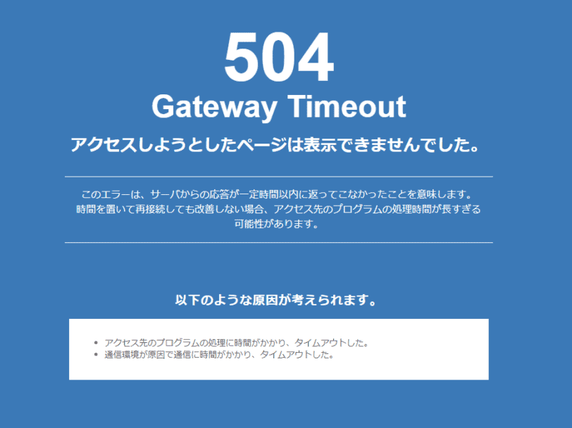 - 該当サイトだけでなく、同一サーバー上の全サイトが504 Gateway Timeoutを返す
