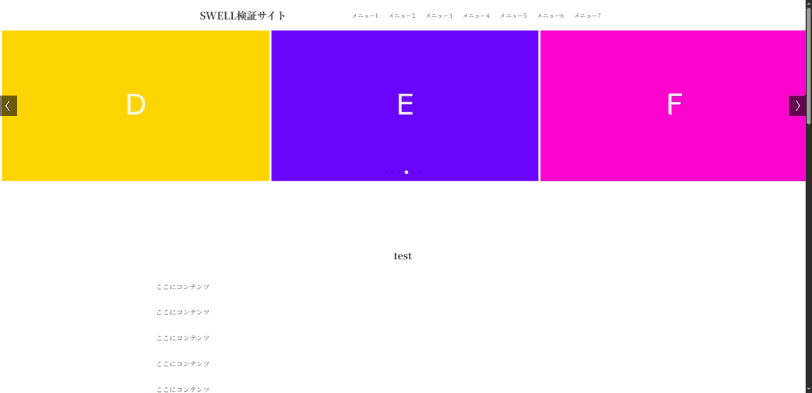 SWELLのクラスに合わせた自作のスライダーなので、自由な枚数、Swiperのカスタマイズが可能です。